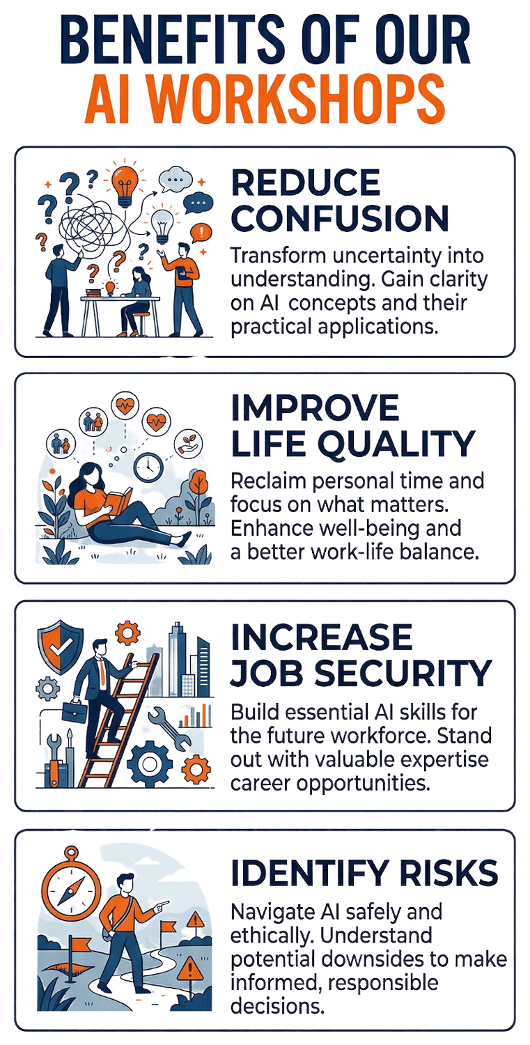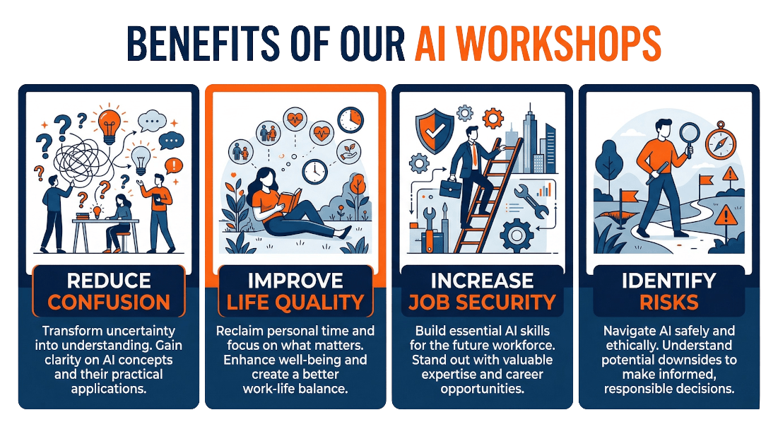 Every session focuses on practical tools and tasks you can use immediately in your work or daily life.